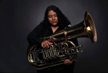 after moving from brooklyn new york to boca raton florida alex joined band and selected the tuba in middle school. Alex continued pursuing music through to college, where she majored in music PERFORMANCE at florida atlantic university. while IN COLLEGE alex was a founding member of HER UNIVERSITY'S tuba/EUPHONIUM quartet, as well as a member of wind ensemble and the symphony orchestra. alex also performed with Orchid City brass band, tAUGHT PRIVATE LESSONS AND WORKED AS A LOW BRASS CLINICIAN FOR VARIOUS HIGH SCHOOLS AND MIDDLE SCHOOLS WITHIN PALM BEACH COUNTY. Alex also has experience professionally gigging throughout south florida from solo work to professional orchestra work and even recording for a Metal band album. Currently alex is on the substitute list for the hershey symphony orchestra, and performs with multiple different groups including brass storm.